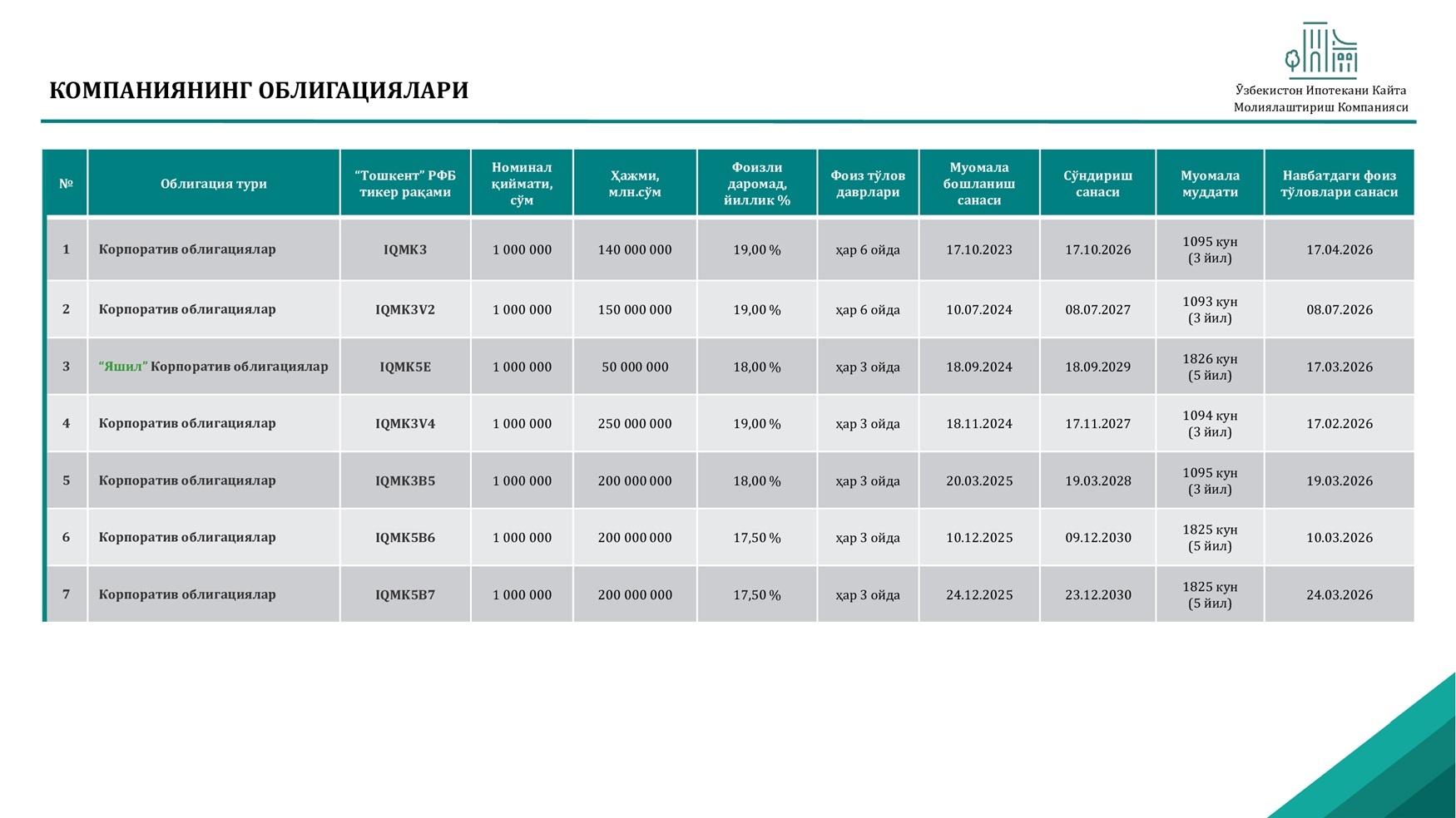 - Emitent — obligatsiyani chiqaruvchi tashkilot.